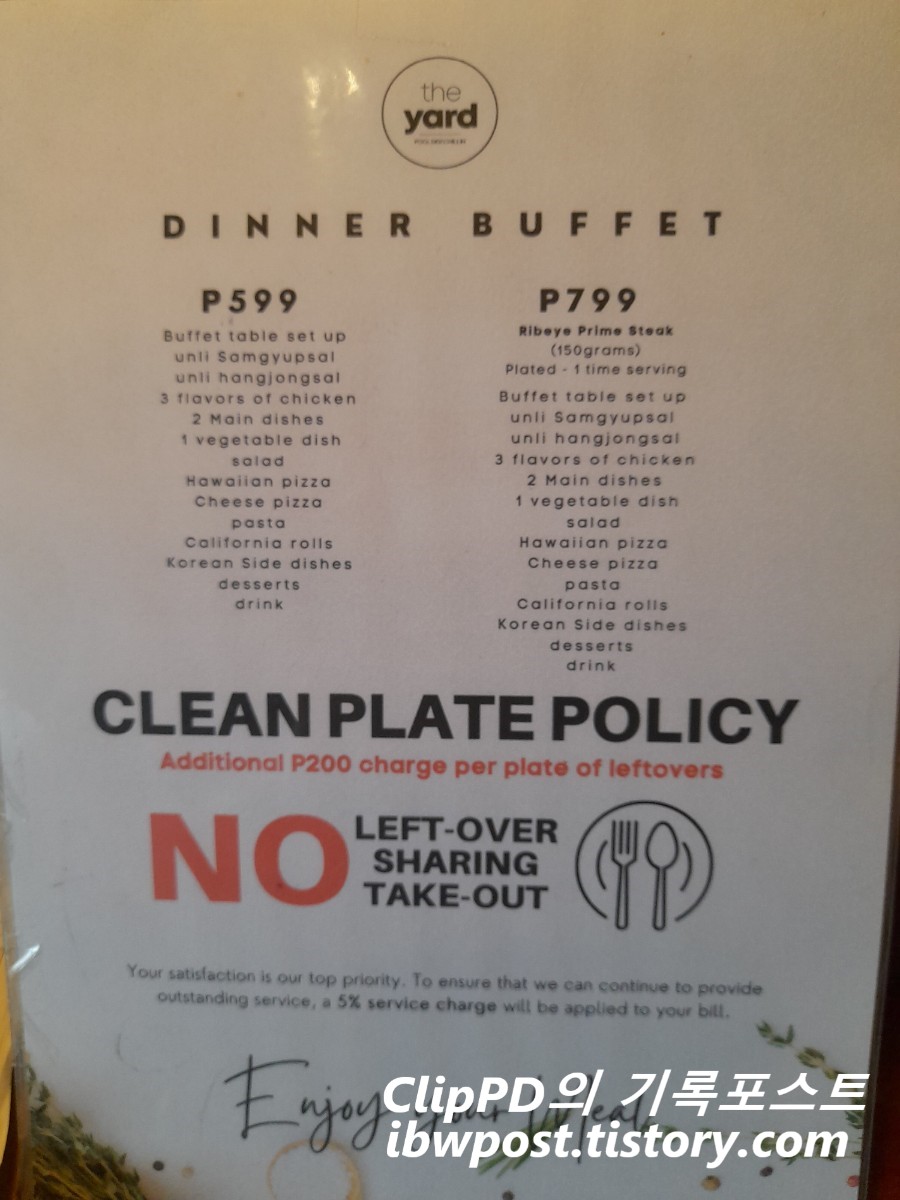 Hotel Snow는 The Yard라는 이름의 작은 디너뷔페를 운영하고 있다.