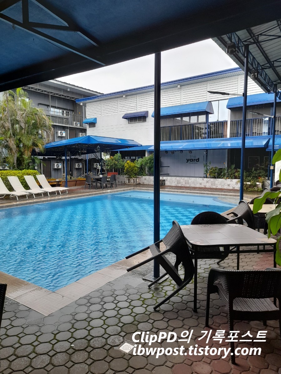 포스팅하고 있는 당일이 태풍이 오고 있어서 그런지 비가 좀 길게 온다. 그래서 수영장에 사람이 없었음.